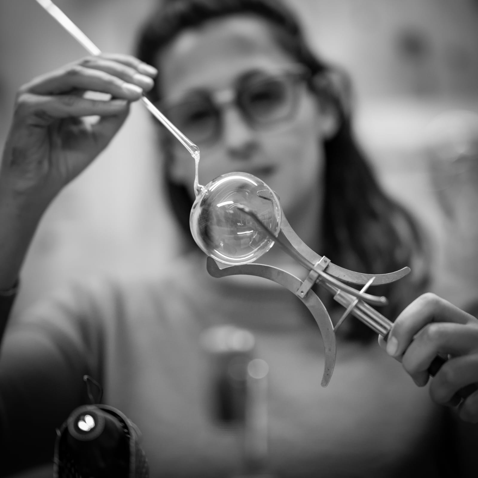 Glasbläserei: ein festes Material verflüssigen, formen, veredeln