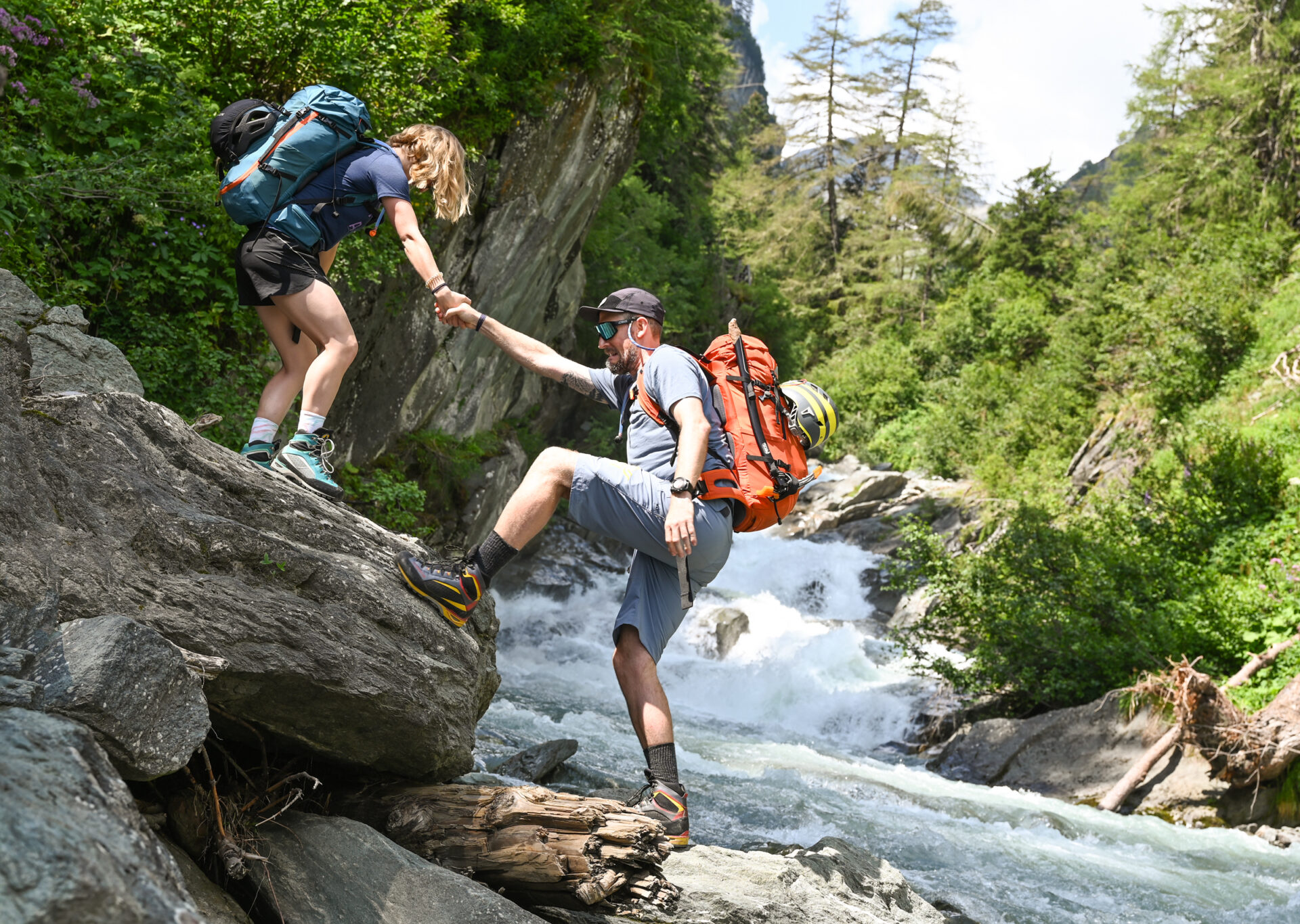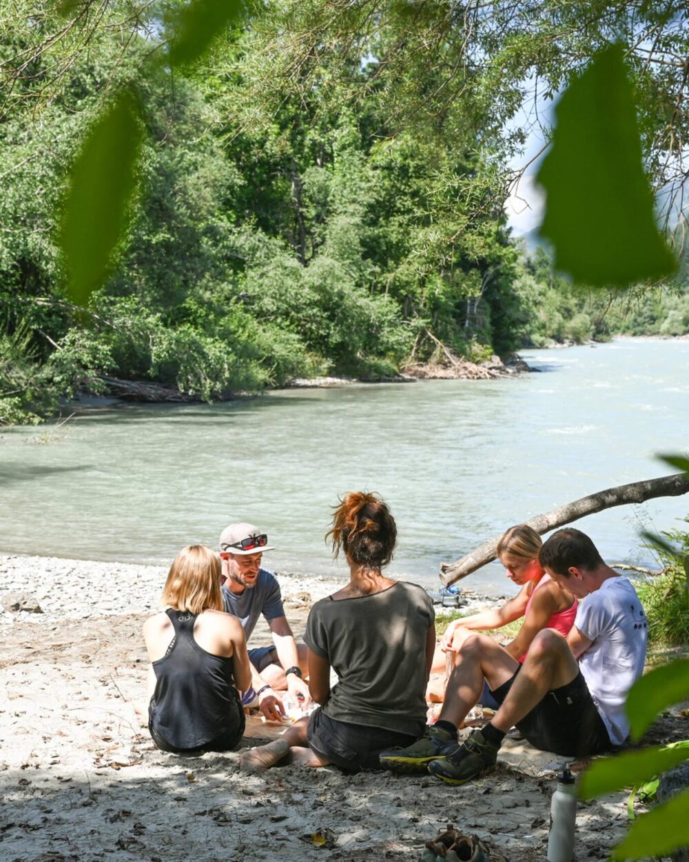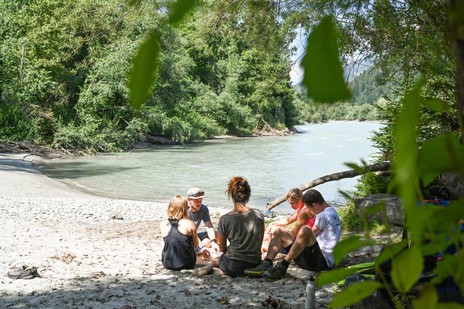Los ging es mit Guide Evelyn Gander in der Sonnenstadat Lienz, wo die Isel in die Drau mündet. Von dort aus wanderten die Pärchen flussaufwärts. Am zweiten Tag stand ein besonderes Abenteuer an: Packrafting auf der Isel. Die anschließende dritte Etappe führte von Matrei hinauf nach Hinterbichl in Prägraten am Großvenediger. Begleitet von Nationalpark-Ranger Simon Zeiner lernte die Gruppe über die vielfältige und schützenswerte Fauna und Flora des Nationalparks Hohe Tauern kennen. Besonders beeindruckt zeigt sich die Gruppe vom Wandel der Isel: Nach den ersten 50 Kilometern verändert sich die Isel stets und ständig vom gemächlichen Fluss hin zum reißenden Gletscherbach.