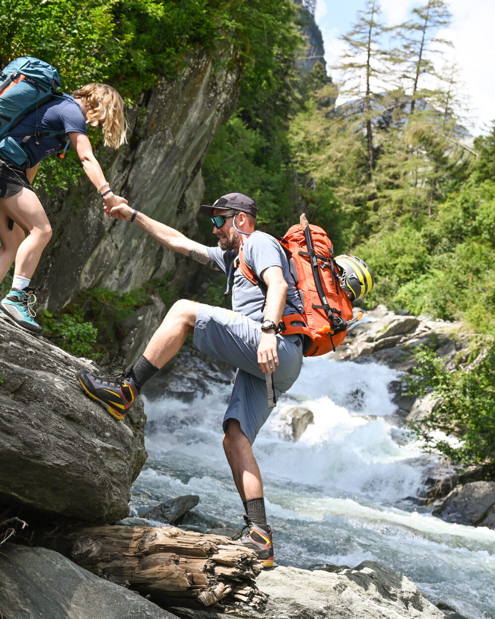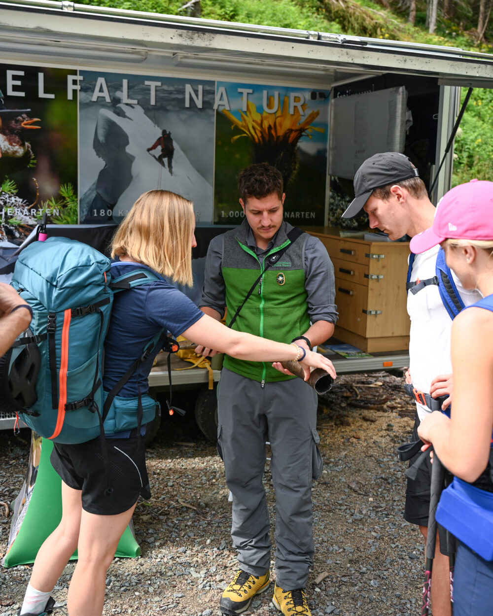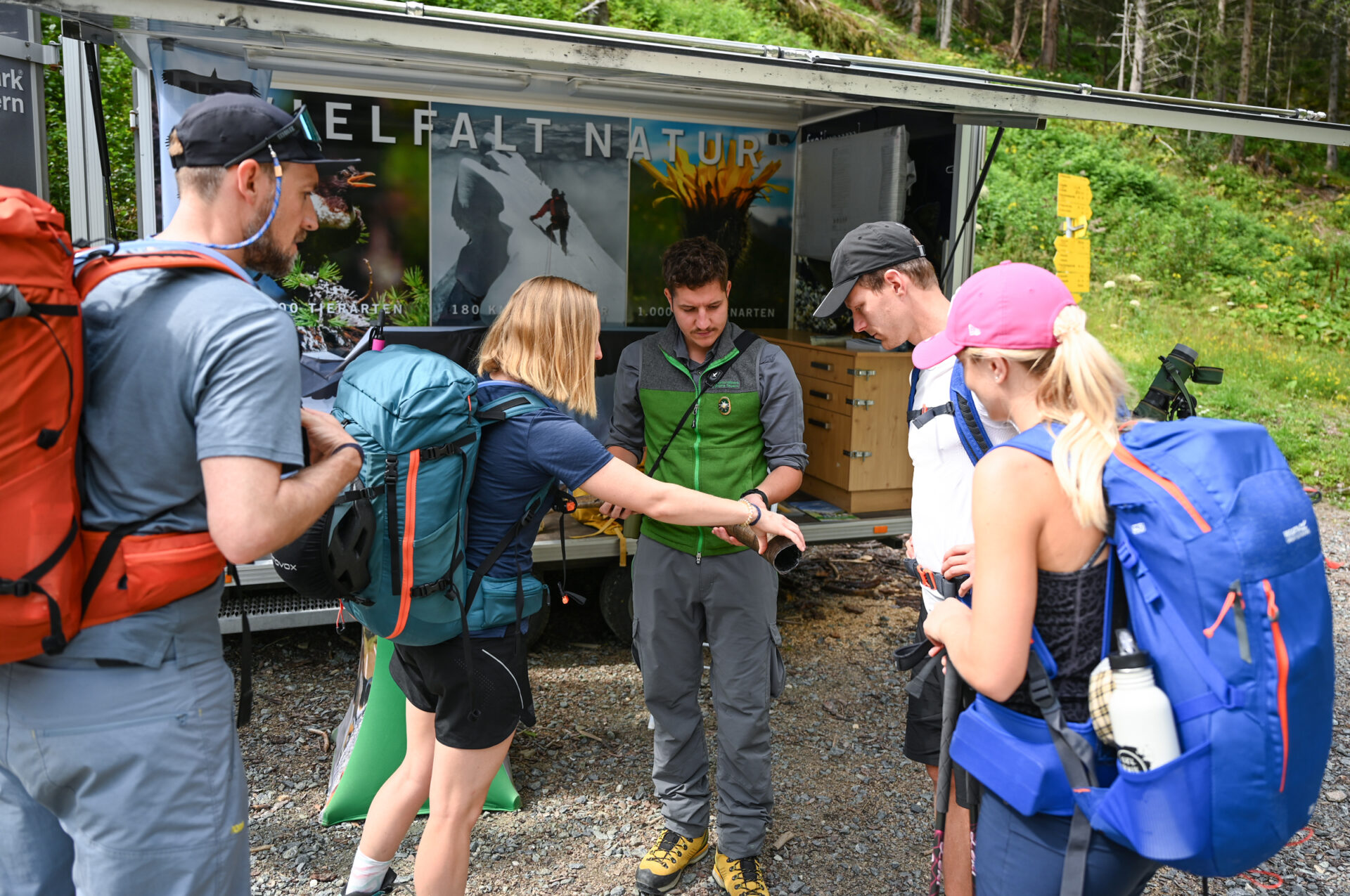 Los ging es mit Guide Evelyn Gander in der Sonnenstadat Lienz, wo die Isel in die Drau mündet. Von dort aus wanderten die Pärchen flussaufwärts. Am zweiten Tag stand ein besonderes Abenteuer an: Packrafting auf der Isel. Die anschließende dritte Etappe führte von Matrei hinauf nach Hinterbichl in Prägraten am Großvenediger. Begleitet von Nationalpark-Ranger Simon Zeiner lernte die Gruppe über die vielfältige und schützenswerte Fauna und Flora des Nationalparks Hohe Tauern kennen. Besonders beeindruckt zeigt sich die Gruppe vom Wandel der Isel: Nach den ersten 50 Kilometern verändert sich die Isel stets und ständig vom gemächlichen Fluss hin zum reißenden Gletscherbach.