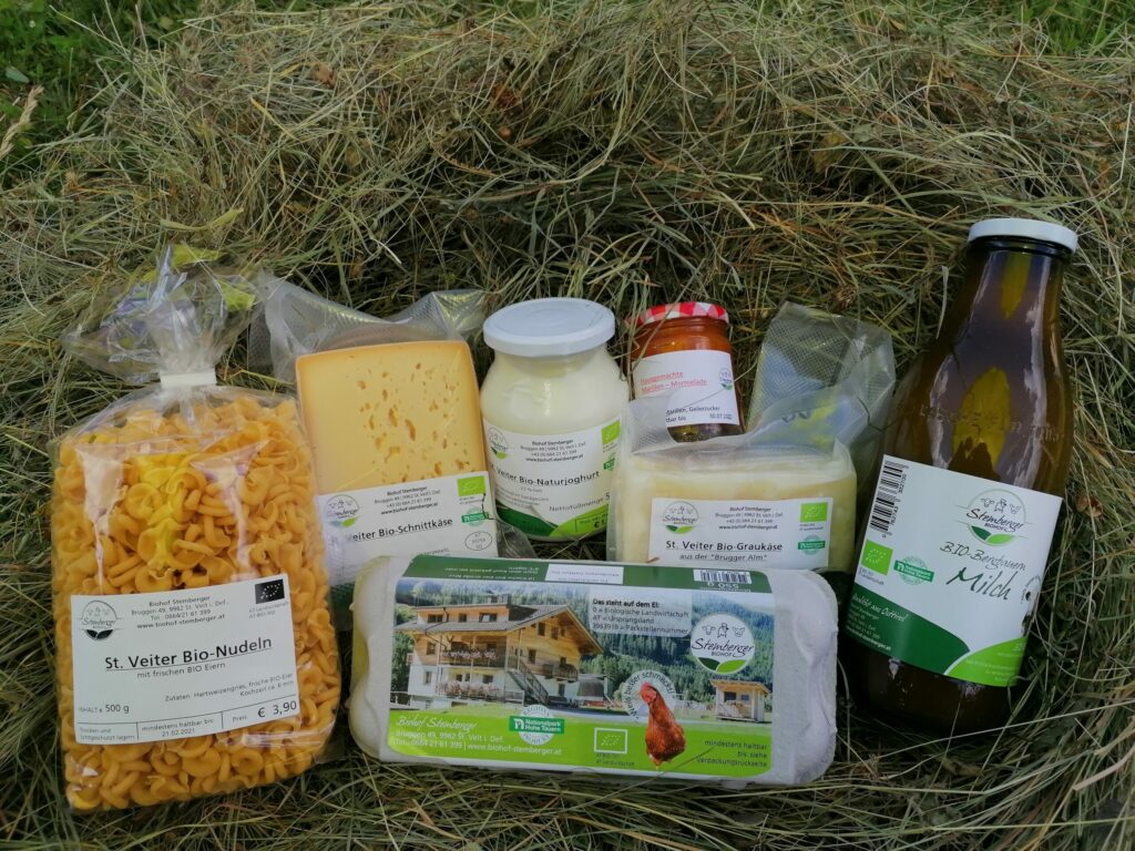 Der Großteil der Milch geht an die Molkerei, jedoch nicht alles. Bernhard’s Mutter Margit verarbeitet den wertvollen Rohstoff hauptsächlich im Sommer auf der Alm weiter zu Nationalpark-Regionsprodukten wie Butter, Joghurt oder Graukäse. Die Eier werden teilweise zu Nudeln weiterverarbeitet. All ihre hofeigenen Produkte und viele weitere Schmankerln gibt es im eigenen Hofladen, 7 Tage die Woche, 365 Tage im Jahr, rund um die Uhr zu kaufen. Der Hofladen ist ein kleiner Bauernladen und steht seit Jänner 2019 zwischen Wohnhaus und Stall. Das Ladele bietet täglich frische Eier und Milch, selbst hergestellte Osttiroler Spezialitäten wie Hauswürste, Speck, Käse und Co., Knödel verschiedenster Art u.v.m.